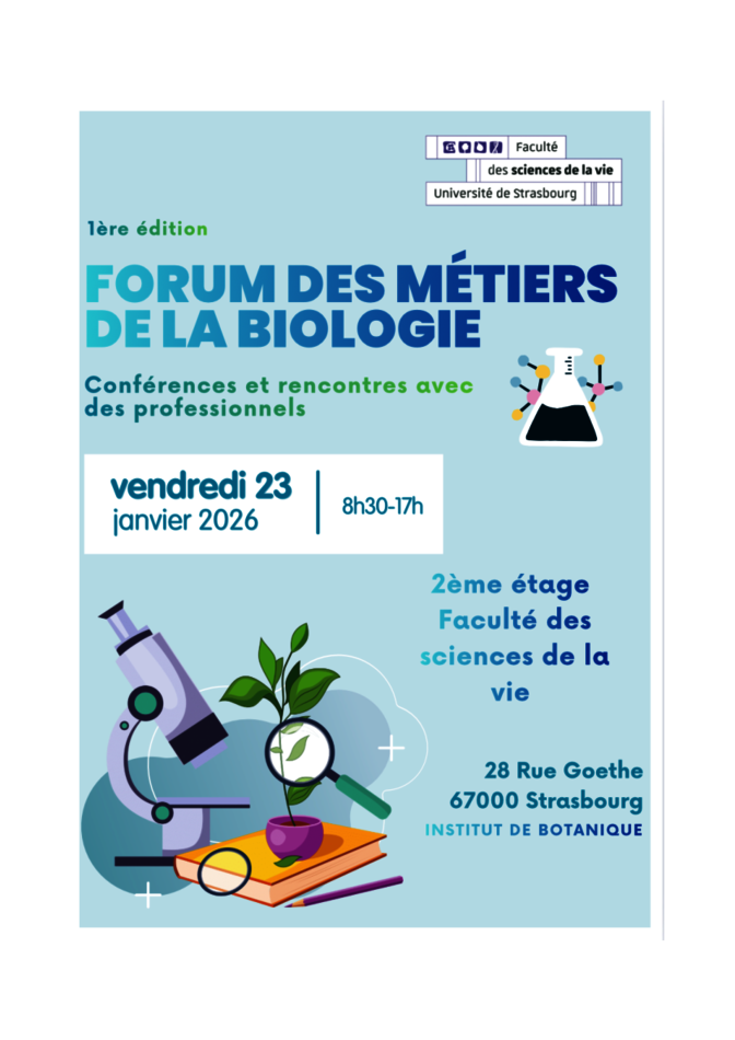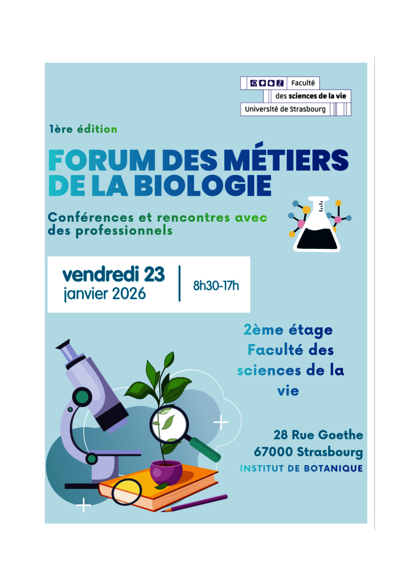 Forum des métiers de la biologie Sciences de la vie La Faculté des sciences de la vie organise son premier Forum le vendredi 23 janvier. 23 janvier 2026 8h30 17h