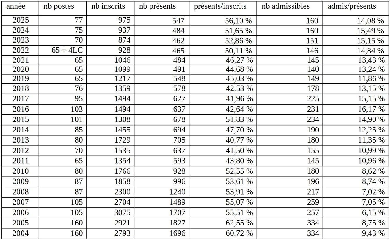 Le jury du concours met à disposition sur le site du ministère un rapport de jury pour chaque session, comportant les épreuves (écrits, TP, oraux) ainsi que les remarques du jury.